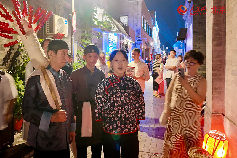 在当晚的启动仪式上,200余盏红灯笼点亮了胡同夜空,营造出温暖而浪漫的氛围。现场还重现了老北京传统的“京城三哨”表演:盘旋的鸽哨、嗡鸣的空竹以及悠扬的传统叫卖声交织在一起,仿佛让人穿越回百年前的旧时光。