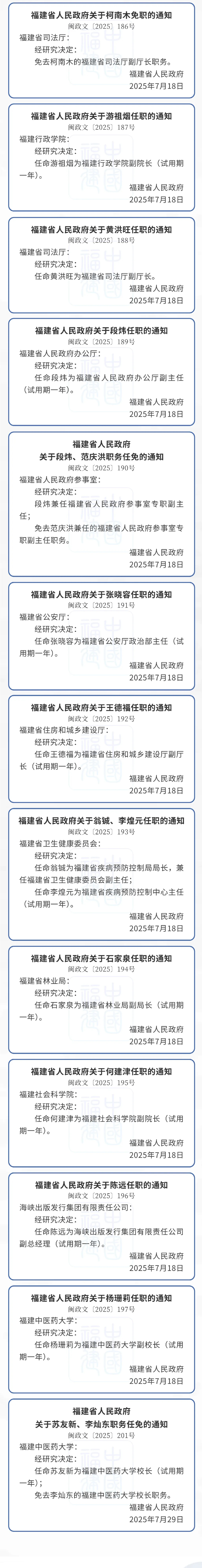福建省政府任命和免职部分厅级干部