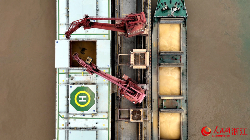 码头后方,一排排洁白的筒仓静静矗立,总仓储能力达到174万吨。大豆精深加工生产线和玉米精深加工生产线也在全速运转,展现了舟山将“一粒豆”和“一颗玉米”吃干榨净的产业实力。